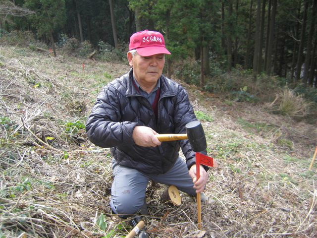 2月10日に維持管理部会中心に植樹作業を行います。 その準備のため、この日、さくら友の会の福冨会長、西川事務局長、江原維持管理部会長、城戸会員交流部会長が深坂で準備作業を行いました。 50本の苗木を植える場所をあらかじめ決めて目印杭を打ち込みました。 本当にご苦労様でした。