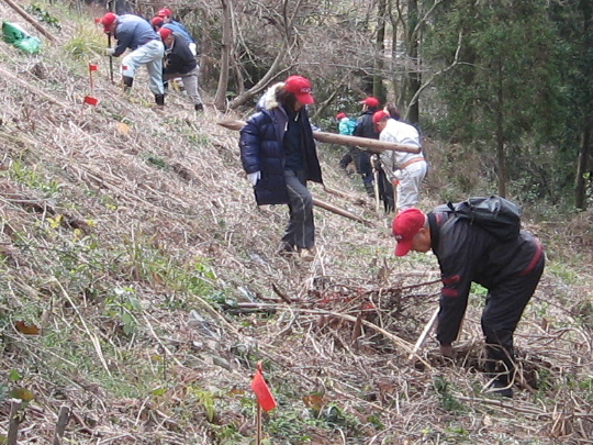 2008年3月9日(日)午前9時 定例会 39名が集合した。 今回は追加20本の植樹。 施肥作業。 ゴミ集め。