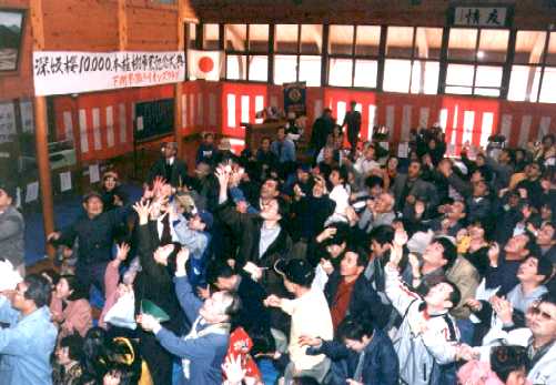 インパクトがあるように10,000本と大きく歌い上げました。しかし、近年植える場所の確保が難しく、募集を制限せざるを得ません。10,000本というのはいっぱいという意味で、数値目標ではないという苦しい弁解も聞かれます。 山の上の方なら、無いこともないのですが、「そんな高いところはイヤ!」というオーナーさんも居られます。